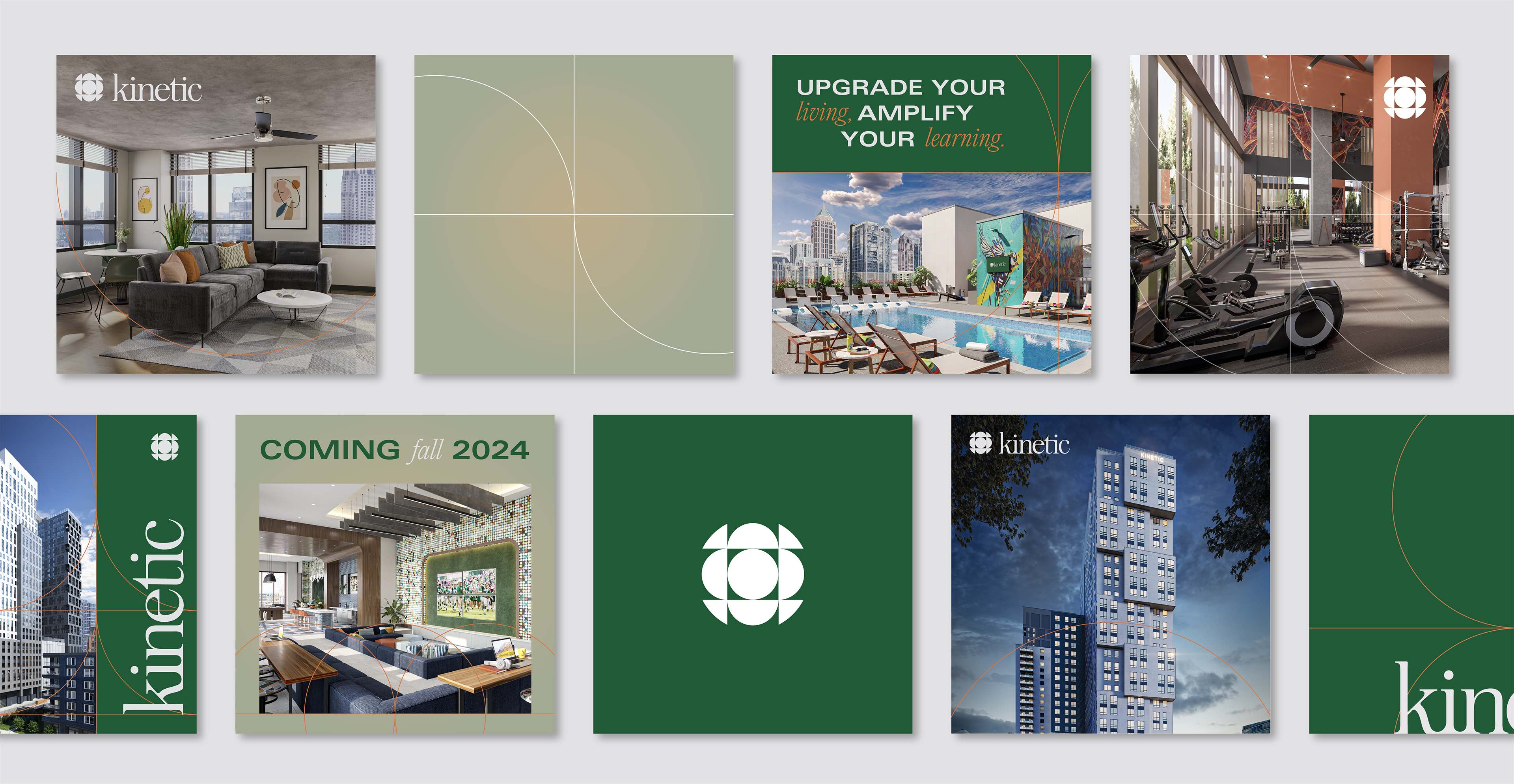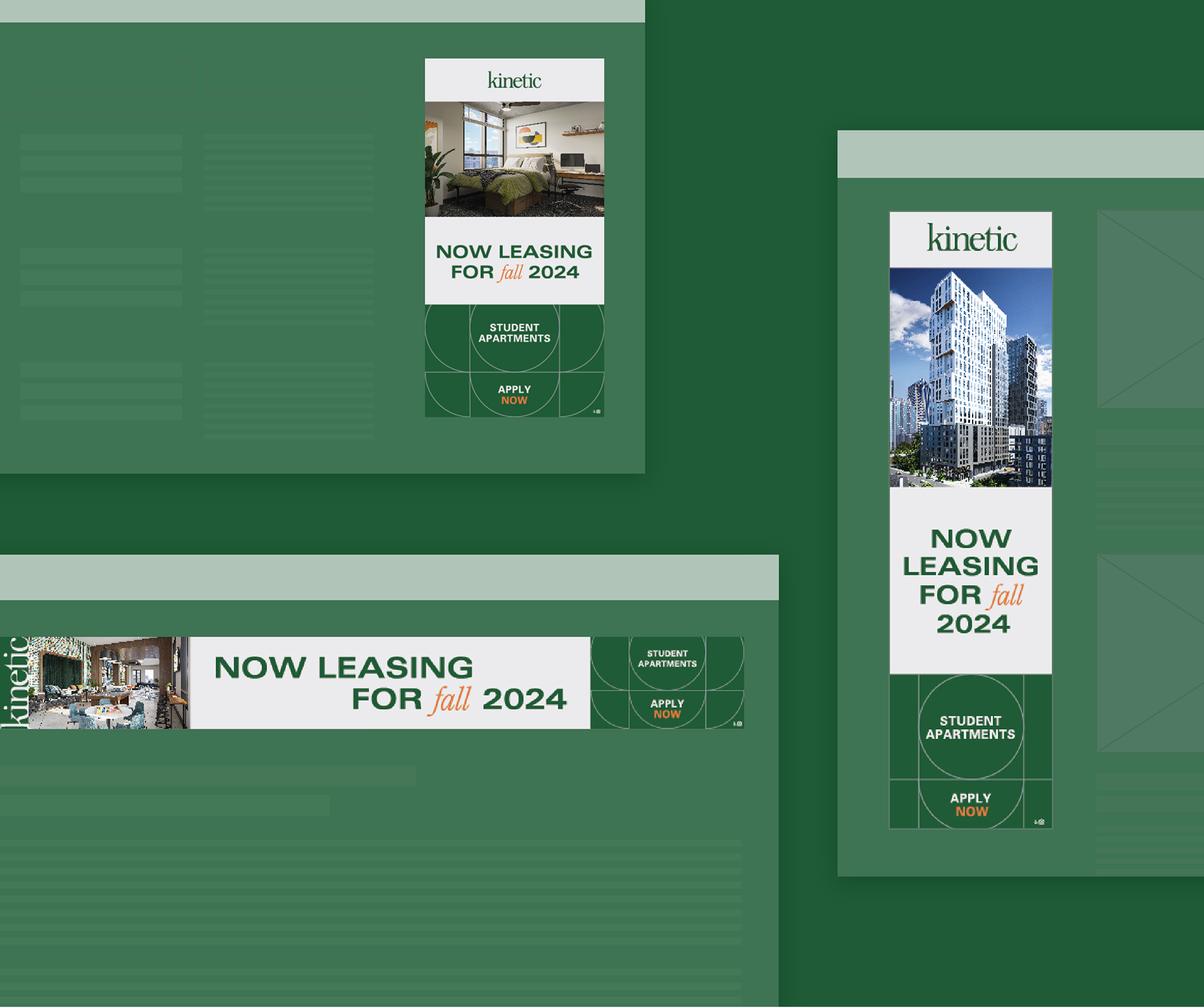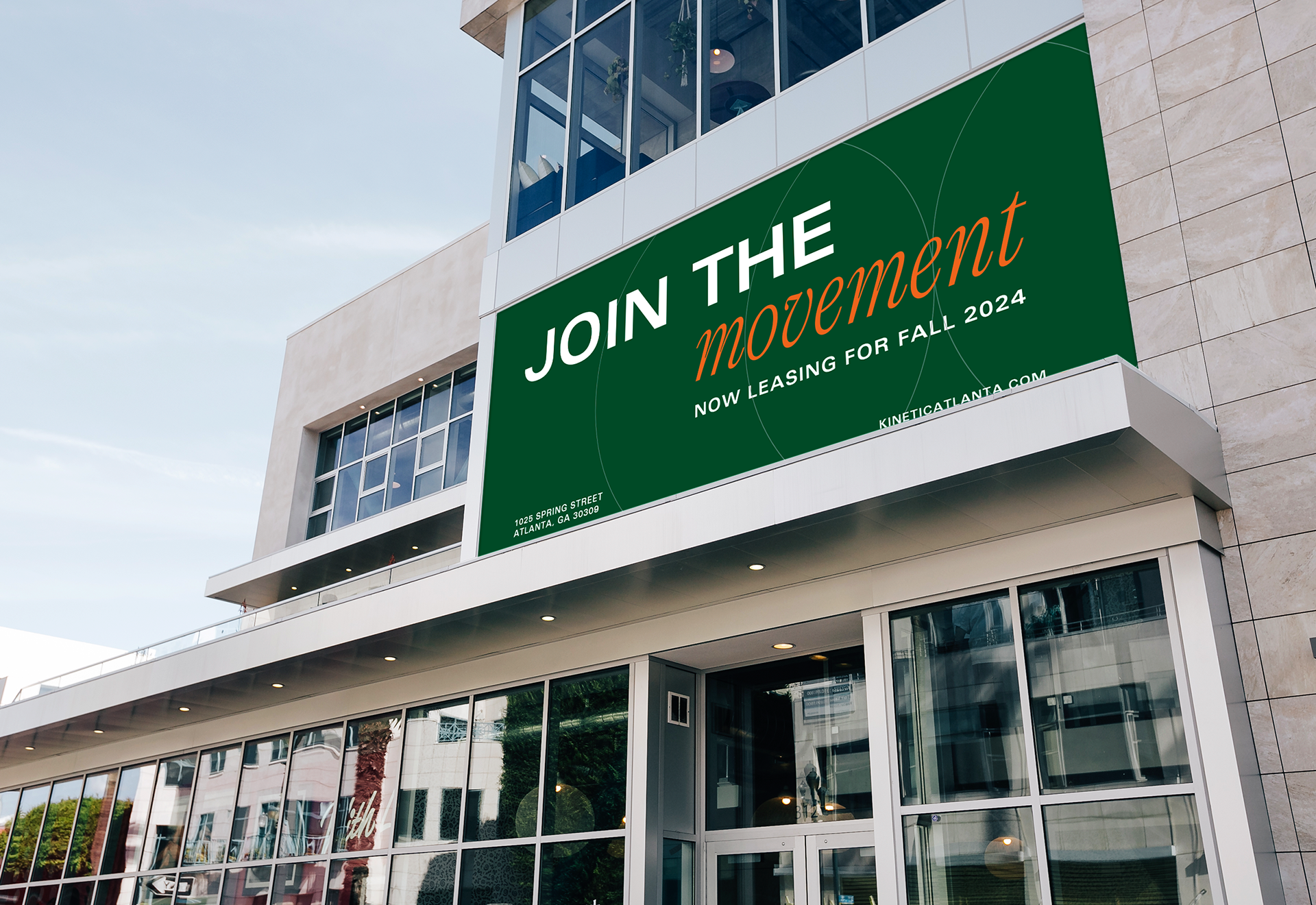 To support the rapid pre-leasing of Kinetic, a premier student-living community in Midtown Atlanta, a comprehensive suite of digital and physical marketing assets was developed. Targeted at the "next generation of innovators" at Georgia Tech, the design language balances a bold, energetic aesthetic with the sophisticated, "composed" atmosphere of the property.